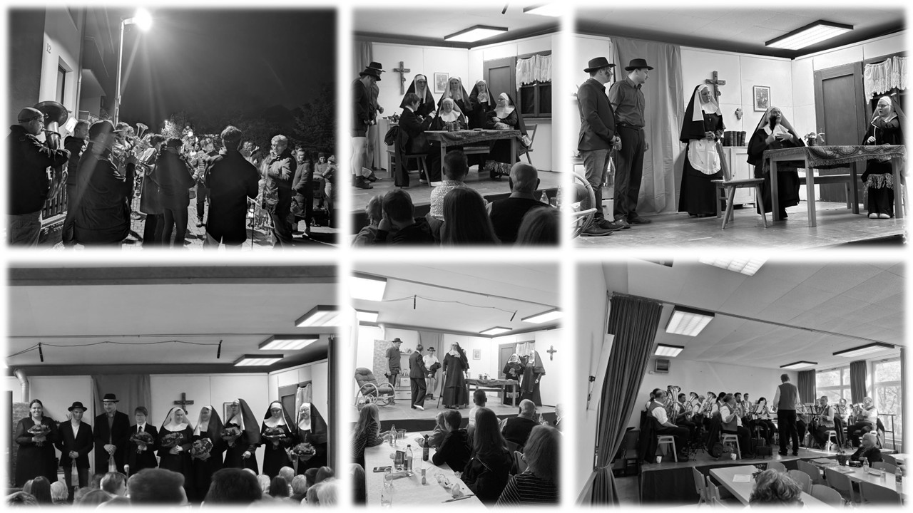 Im Kloster "Schönblick" ist nichts mehr so, wie es einmal war. Keine Kirchgänger mehr und das Kloster fällt fast auseinander. Auch die verbliebenen Nonnen (Beate Schweiker, Julia Spielmann, Helga Stockmaier, Teresa Dauser) wissen langsam nicht mehr, was sie noch machen sollen und vertreiben sich den Tag mit Pokern um Oblaten oder überlegen, wie man das Unternehmen "Kloster" wieder in Schwung bringen könnte. Allerdings nur, so lange Oberschwester Lucretia (Tanja Dauser) nicht in der Nähe ist, die ein strenges Regime führt, ganz nach dem Motto: Früher war alles besser! So lebt es sich ganz bescheiden, bis eines Tages zwei windige Gestalten (Andreas Fellger, Pascal Schweiker) auftauchen, die eine ziemlich große Klappe und einen dicken Koffer voller Geld dabei haben. Als Big Boss (Susanne Glück-Gärtner) auf die Bühne tritt geht es plötzlich um Alles oder Nichts. Im ausverkauften Vereinsheim gab es an diesem Abend sehr viele Lacher. Unterstützt wurden die Theaterspieler von Michaela Hänssler als Souffleuse und an der Technik.